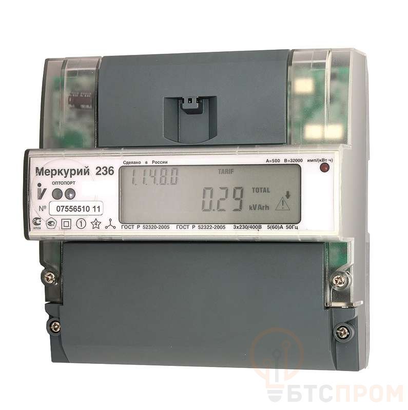 Счетчик Меркурий 236 ART-03 PQRS 3ф 5-10А класс точн. 0.5S/1.0 многотариф. оптопорт RS-485 на DIN-рейку ЖКИ Екат. вр. Инкотекс М0000051672
