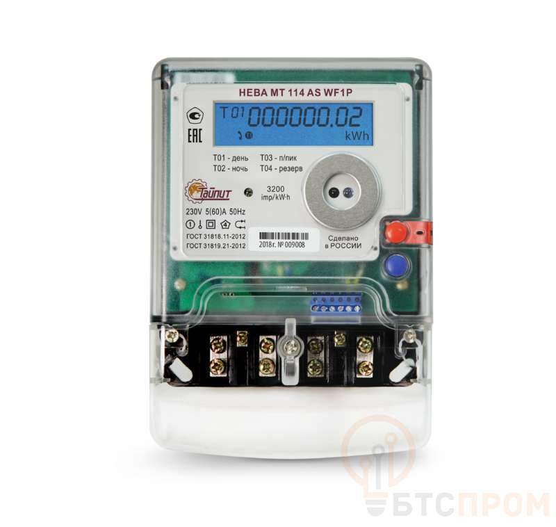 Счетчик НЕВА МТ 114 AS WF1P 1ф 5-60А класс точн. 1.0 многотариф. Моск. вр. ТАЙПИТ 6127775 фото в каталоге от BTSprom.by
