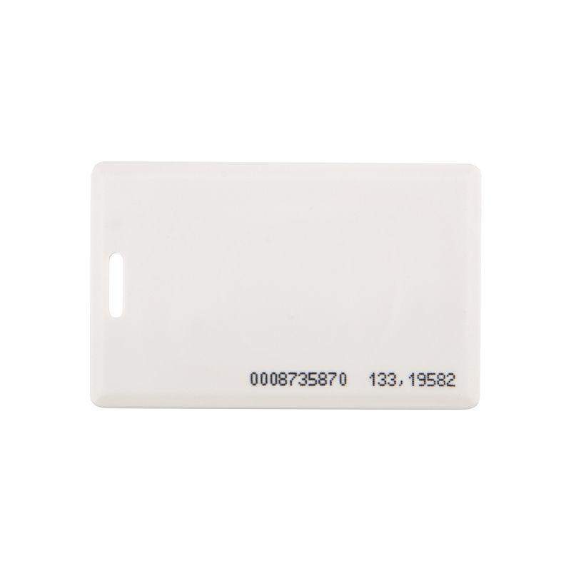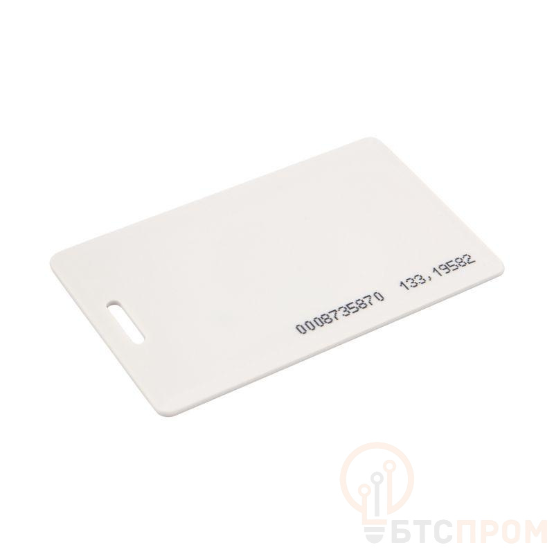 Ключ электронный 125KHz формат EM Marin имеет размеры обычной кредитной карты.Бесконтактные карты используются в системах контроля доступа для идентификации личности. В карту занесен код. При поднесении к бесконтактному считывателю код с карты считывается и передается в контроллер. Преимуществом электронных пропусков является возможность использовать их не только в качестве бесконтактной идентификации личности, ключа для доступа в помещение, но и для организации контроля трудовой дисциплины и учета рабочего времени. Размеры (мм): 85.5?54?1.88 Рабочая частота: 125KHz Тип памяти: Только чтение Материал: ABS Возможность нанесения логотипа: да; Температура хранения: -40°С…+75°С;