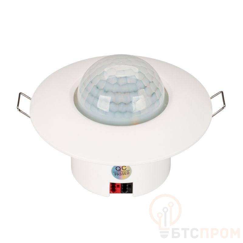 ИК датчик присутствия KNX. Встроенные датчики освещенности и температуры. Питание от шины KNX DC 21-30V. Размер 65хO93 мм. Размер утапливаемой части 38хO52 мм.