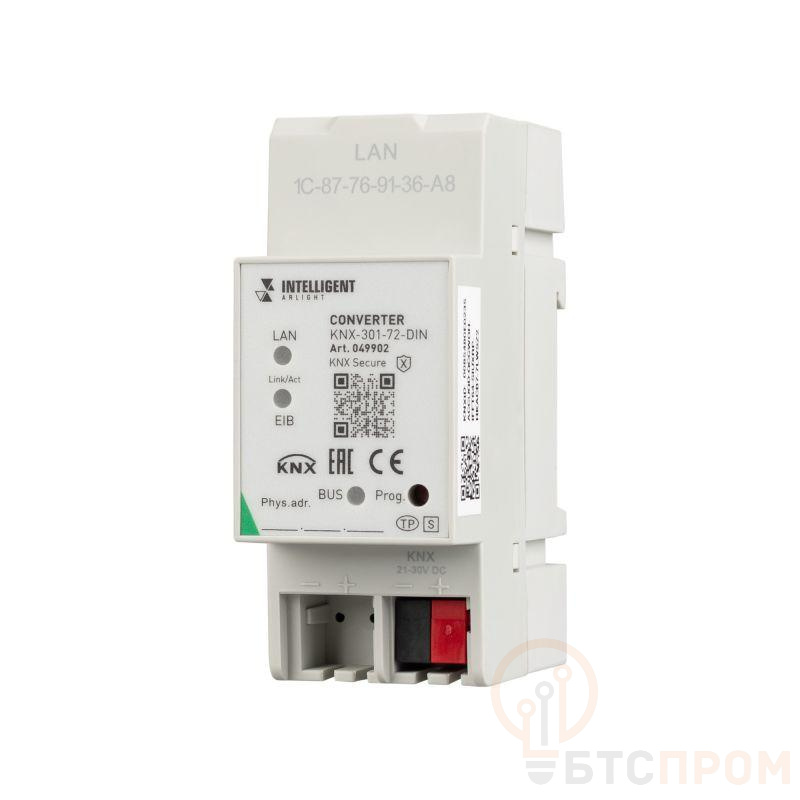 Шлюз Ethernet-KNX, для доступа к KNX шине через Ethernet сеть. Для мониторинга и конфигурирования инсталляции. Не может использоваться как "шинный соединитель". До 5 одновременных IP подключений (открытых сокетов). Требуется дополнительное питание, напряжение DC 20-30V. Размер 90?36?64 мм.