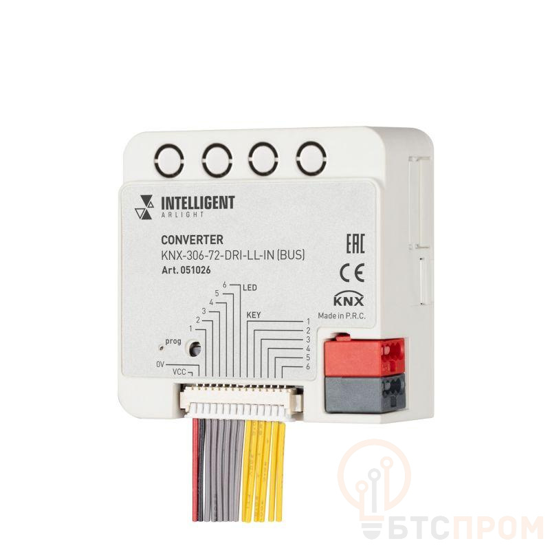 Конвертер KNX позволяет подключить выключатели и датчики с выходом «сухой контакт» любых производителей. 6 входов. Установка в подрозетник. Питание DC 21-30V от шины данных. 6 выходов на индикаторы 1 мА. Размер 50x50х22.8 мм.