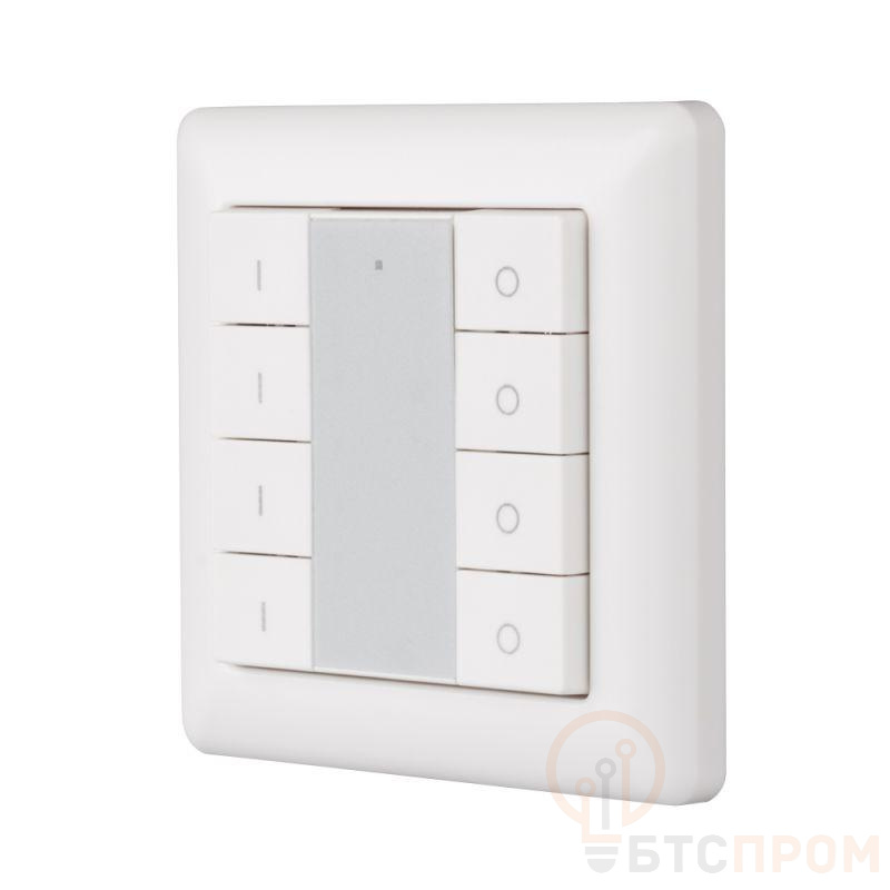 Универсальная многофункциональная накладная настенная панель для систем KNX. 8 клавиши. Материал - пластик. Цвет корпуса - белый. Питание от шины KNX DC 21-30V. Габариты 55.5х55.5х13 мм. Совместима с рамками европейских производителей (GIRA, JUNG, BERKER и т.п.). Стандартная рамка входит в комплект поставки.