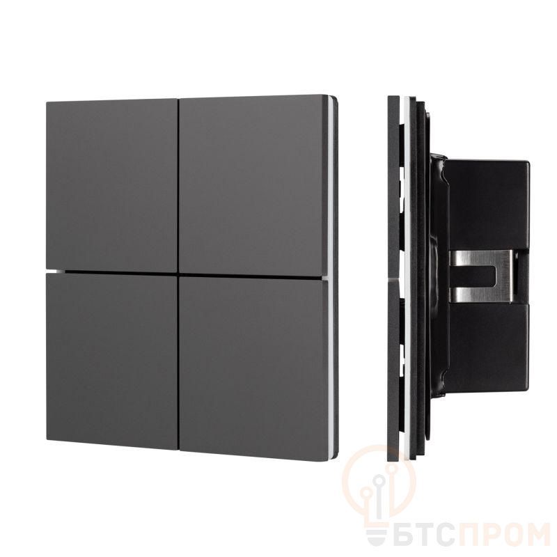 Универсальная многофункциональная встраиваемая настенная панель для систем KNX. 4 рокерные клавиши, 1 клавиша может выполнять функции 2-х клавиш. Безрамочный корпус, материал - алюминий, отклик вибрацией, светодиодная индикация. Цвет корпуса - титановый чёрный. Питание от шины KNX DC 21-30V. Габариты 86x86x33 мм.