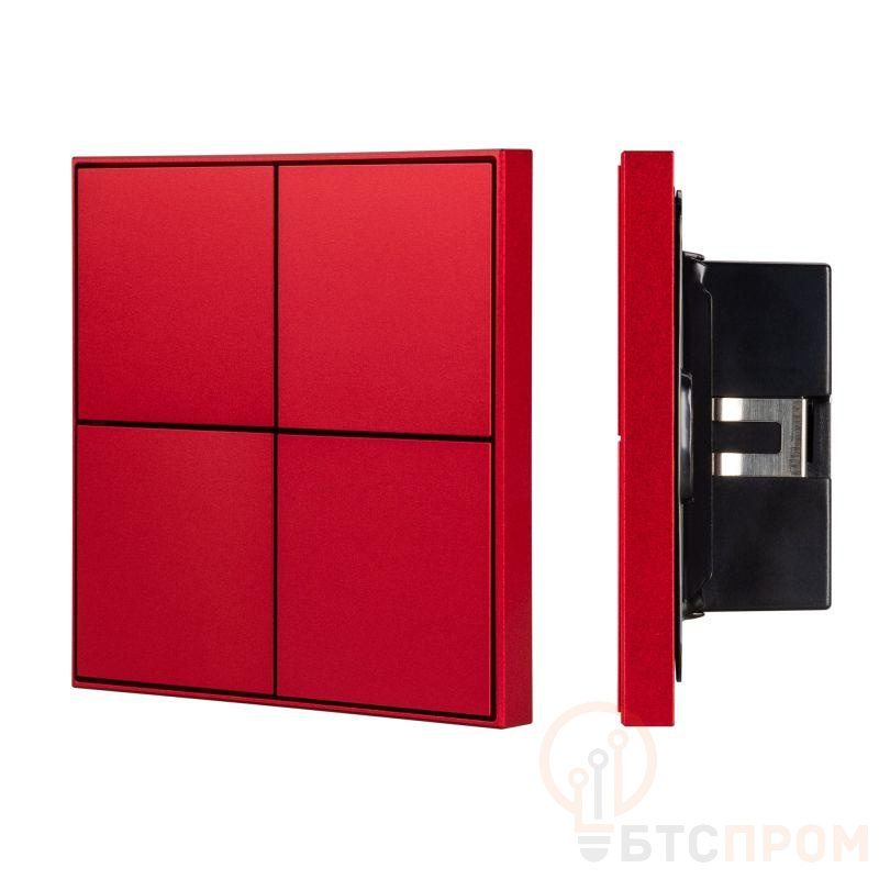 Универсальная многофункциональная встраиваемая настенная панель для систем KNX. 4 рокерные клавиши, 1 клавиша может выполнять функции 2-х клавиш. Тонкая рамка, материал - алюминий, отклик вибрацией, светодиодная индикация. Цвет корпуса - розово-красный. Питание от шины KNX DC 21-30V. Габариты 86x86x33 мм. Под заказ от 10 штук.