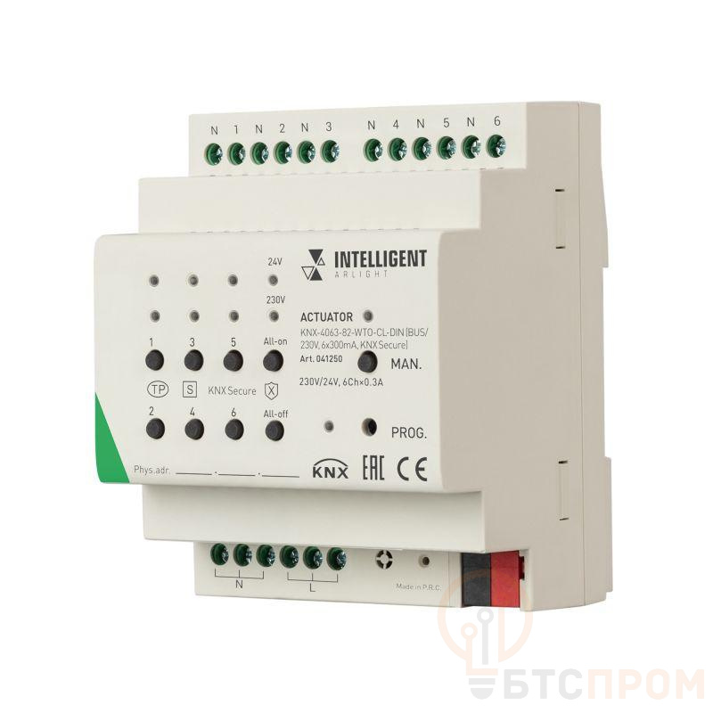 Актуатор KNX-4063-82-WTO-CL-DIN (BUS/230В 6х300мА KNX Secure) IP20 пластик INTELLIGENT ARLIGHT 041250