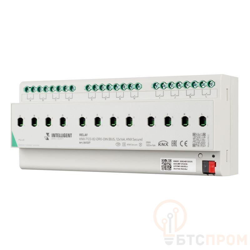 Релейный модуль 12-х канальный для KNX систем. Установка на DIN рейку. Напряжение питания DC 21-30V от шины данных. Максимальный коммутируемый ток - 16А/канал. Для коммутации электрических нагрузок в сетях с номинальным напряжением до 230В.