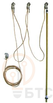 Ключевые характеристики: номинальное сечение гибкого медного проводника — 35 мм², что обеспечивает высокую стойкость к токам короткого замыкания. Конструкция включает в себя надежные зажимы струнного типа для прочного контакта с токоведущими частями, а также изолирующие штанги для безопасного наложения и снятия заземления.