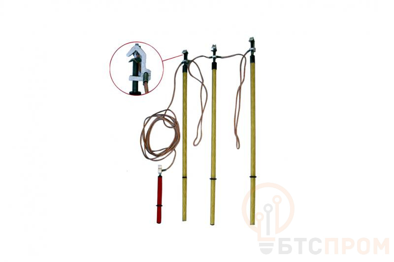 Конструкция состоит из гибкого медного провода с сечением 35 мм², обеспечивающего высокую электропроводность и стойкость к динамическим нагрузкам, и зажимов струнного типа (ПК-1) для надежного контакта с токоведущими частями. Изоляторы выполнены из прочного диэлектрического материала.