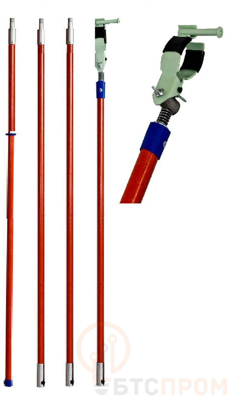 Штанга изолирующая оперативно-универсальная, длиной 6,6 м. предназна-чена для оперативной работы в электроустановках постоянного и переменного тока частотой 50 Гц напряжением до 10 кВ для управления разъединителями, замены трубчатых В/В предохрани-телей, установки деталей, разрядников и т.п.