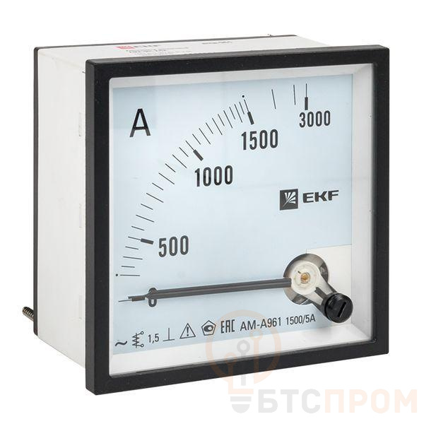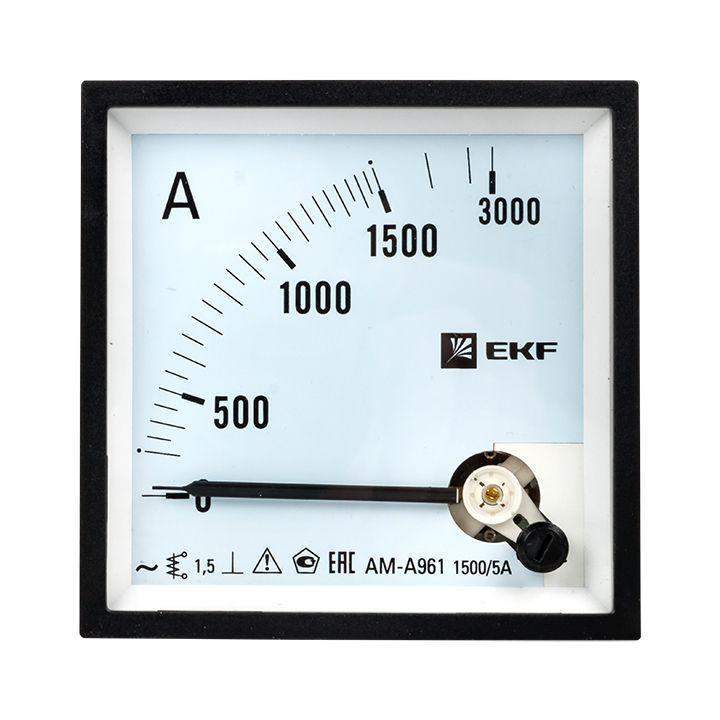 Амперметр аналоговый AM-A961 на панель 96х96 квадрат. вырез 1500А трансф. подкл. EKF am-a961-1500/ama-961-1500