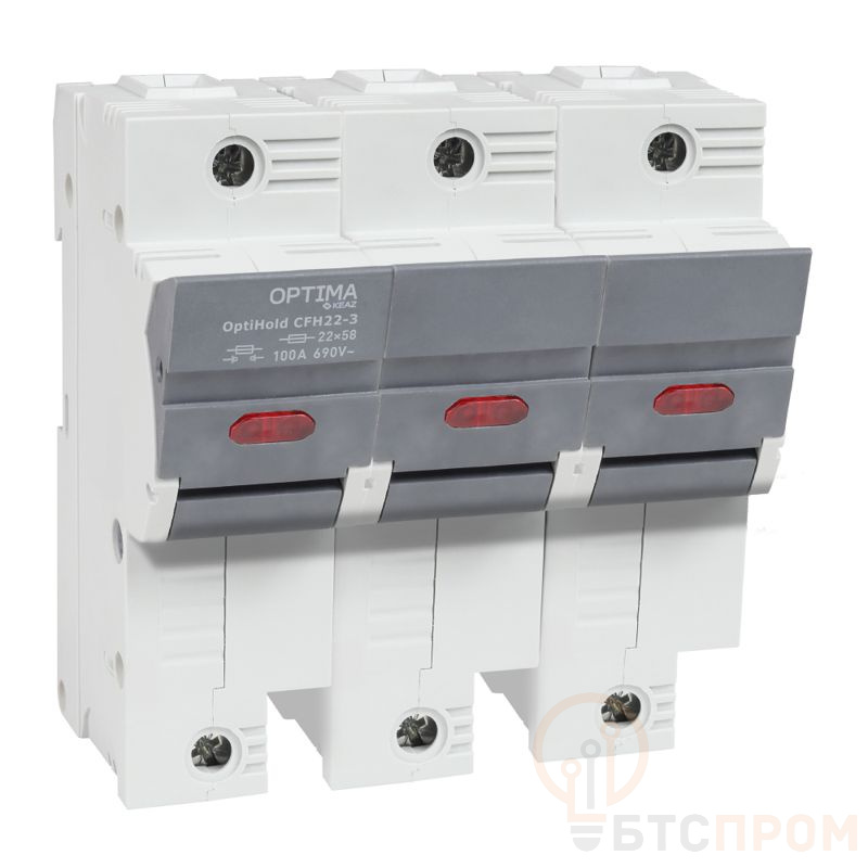 Предохранитель-разъединитель модульный OptiHold CFH22-100-3 от бренда КЭАЗ — это современное и надежное коммутационное устройство, предназначенное для установки на DIN-рейку. Аппарат совмещает функции защиты и видимого разрыва цепи, обеспечивая безопасность при проведении работ. Номинальный ток устройства составляет 100 А, а номинальное напряжение — до 400 В. Он рассчитан на использование с плавкими вставками типоразмера 000. Конструкция включает три полюса и оснащена индикатором положения контактов для визуального контроля.