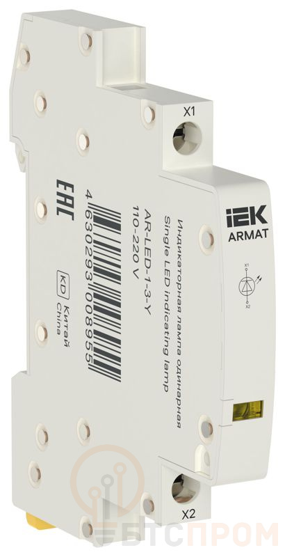 Лампа индикаторная LED серии ARMAT шириной 9 мм предназначена для применения в сетях переменного тока напряжением до 400 В и постоянного тока напряжением до 220 В и служит для световой индикации рабочего состояния электротехнического оборудования. Ассортиментный ряд включает пять вариантов световых фильтров: белый, красный, зеленый, желтый, синий, а также индикатор ж/з/к. Четыре уровня номинального напряжения: 110-230В АС, 230-415В АС, 12-48В DC, 110-220В DC. Три варианта исполнения по роду напряжения: АС, АС/DC, DC. Два варианта исполнения по количеству индикаторов: одинарная или тройная. Два исполнения по режиму работы: продолжительный режим и мигающий режим работы.