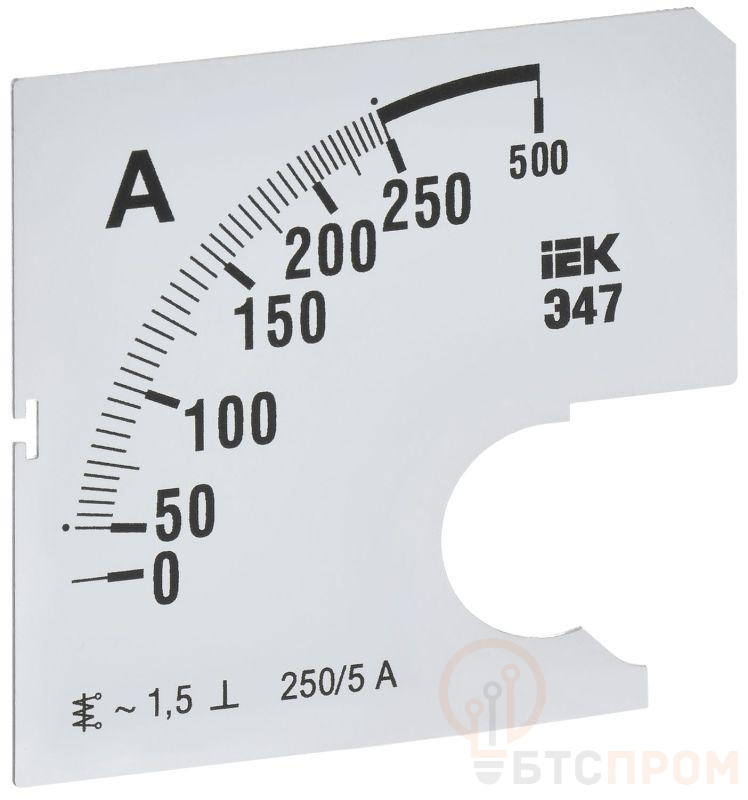 Шкала сменная для амперметра Э47 250/5А-1.5 72х72мм IEK IPA10D-SC-0250 фото в каталоге от BTSprom.by