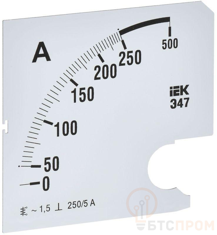 Шкала сменная для амперметра Э47 250/5А-1.5 96х96мм IEK IPA20D-SC-0250 фото в каталоге от BTSprom.by