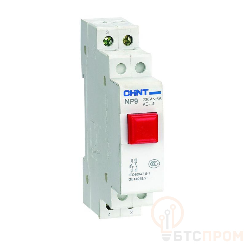 Кнопки серии NP9 предназначены для применения в сетях переменного тока напряжением до 230 В частотой 50/60 Гц для управления электрическими цепями в электроустановках жилых, общественных и промышленных зданий. Основные характеристики: Количество контактов – 1НЗ; 1НО; 1НО+2НЗ; 2НО+1НЗ; 2НО+2НЗ Цвет кнопки – зеленая или красная Исполнение – с подсветкой или без подсветки Номинальный условный тепловой ток – 16 А Номинальный рабочий ток (в категории применения АС-14) – 6 А Номинальное рабочее напряжение – 230 В Механическая износостойкость – 250 тысяч циклов В/О Электрическая износостойкость – 100 тысяч циклов В/О Категория размещения – III Степень загрязнения – 2 Степень защиты – IP20 Ширина – 18 мм Монтаж – на симметричную DIN-рейку 35 мм