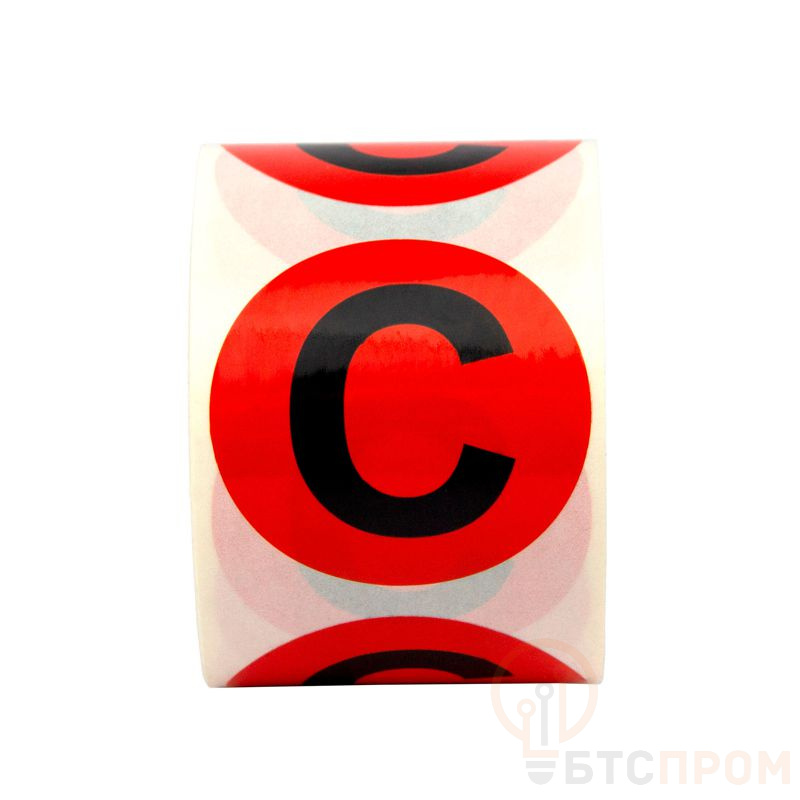 Маркеры для маркировки электрических шин для идентификации шин по фазам. Диаметр 20 мм, круг. Цвет - красный, символ - "С" черного цвета. Материал - самоклеющаяся полимерная пленка. Температура эксплуатации от –40 до +90 °С. Упаковка - 500 шт.