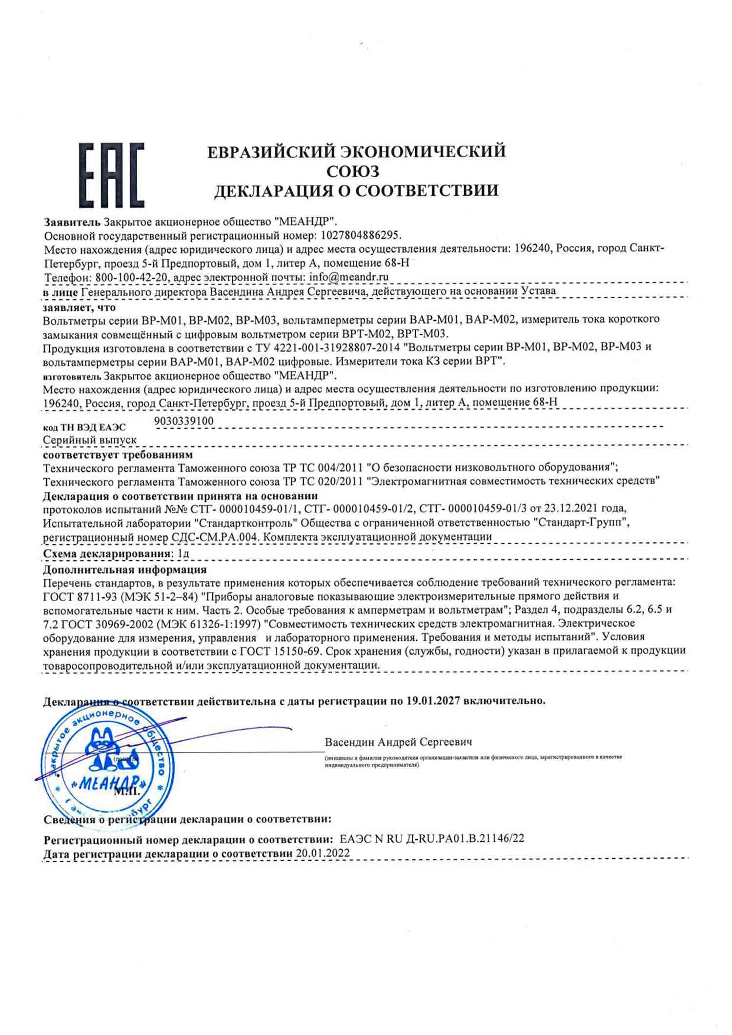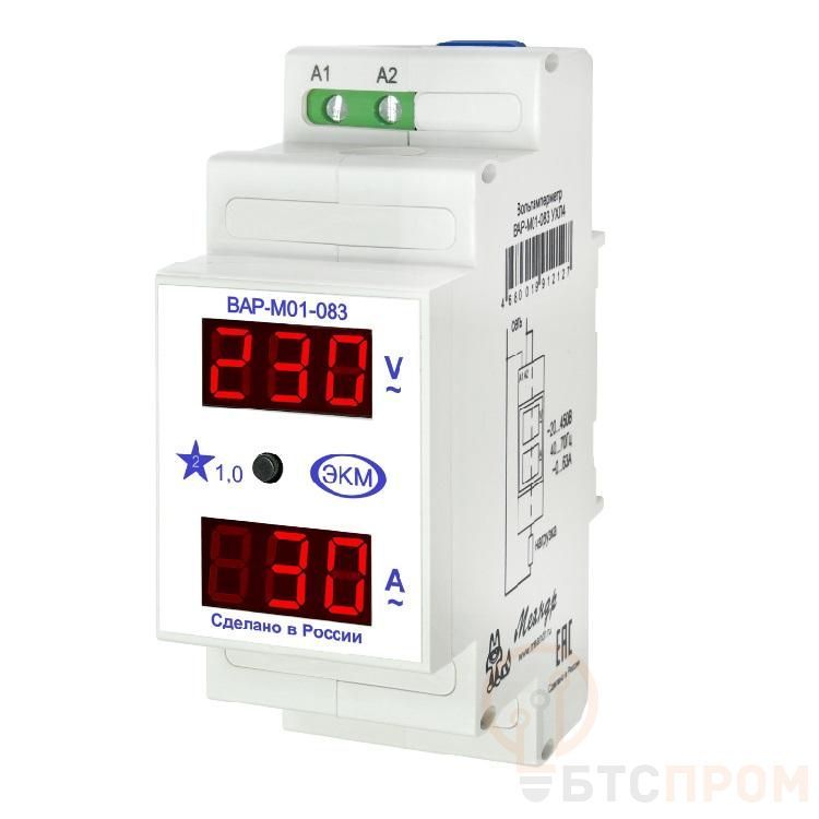 Вольтамперметр цифровой ВАР-М01-083 AC20-450В УХЛ4 20 до 450В и тока от 0 до 63А 2 модуля Меандр A8302-19912127