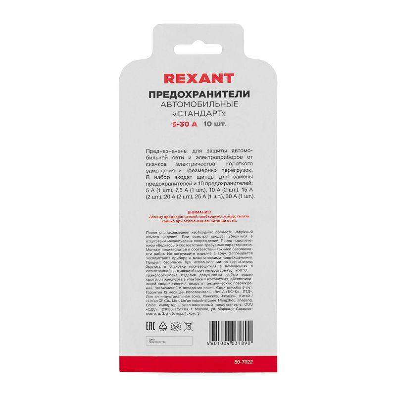 Набор предохранителей (Стандарт) флажкового типа предназначен для защиты автомобильной сети и электроприборов от скачков электричества, короткого замыкания и чрезмерных перегрузок. Используется в легковых и грузовых автомобилях, мотоциклах, мопедах, квадроциклах, мотовездеходах, водных мотоциклах и т. д. Каждый предохранитель состоит из изолирующего корпуса и плавкой вставки из сплава цинка. При резком превышении уровня тока предохранитель выходит из строя (перегорает), защищая более ценные компоненты и предотвращая возгорание проводки автомобиля. Проверка предохранителя на целостность может быть выполнена визуально или с использованием измерительных приборов, которые можно приобрести у компании SDS (SDS-group.ru/catalog_1132.htm). При обнаружении неисправного предохранителя следует заменить его на предохранитель с аналогичными амперными характеристиками. Замену стоит осуществлять только при отключенном питании сети. Набор поставляется в блистерной упаковке. Комплектация: 5 А – 1шт. 7,5 А – 1шт. 10 А – 2шт. 15 А – 2шт. 20 А – 2шт. 25 А – 1шт. 30 А – 1шт. Щипцы (экстрактор) для замены предохранителей.