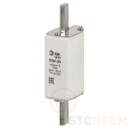 Предохранитель плавкий ППН-33 габарит 0 на номинальный ток 100А от бренда ЭРА (артикул Б0064000) — это надежный компонент для защиты электрических цепей от токов короткого замыкания и продолжительных перегрузок.