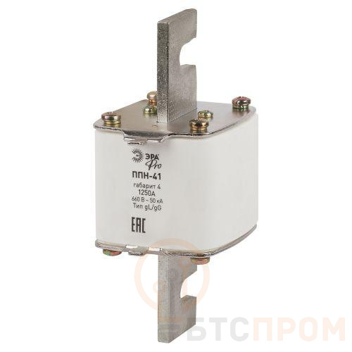 Предохранитель плавкий ППН-341 габарит 4 на номинальный ток 1250А от бренда ЭРА — это надежный компонент для защиты электроустановок от токов короткого замыкания и перегрузок. Данная модель серии PRO (артикул: ppn-41-4-1250, код B0064032) предназначена для эксплуатации в цепях переменного тока до 690В.