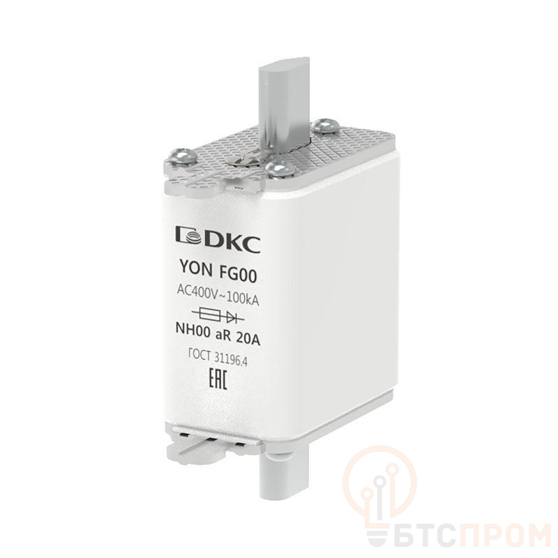 Предохранитель YON ножевого типа FG00 с одинарной индикацией 20А предназначен для защиты полупроводников и электронных компонентов электроустановки от короткого замыкания в цепях переменного тока напряжением до 400В (характеристика aR).