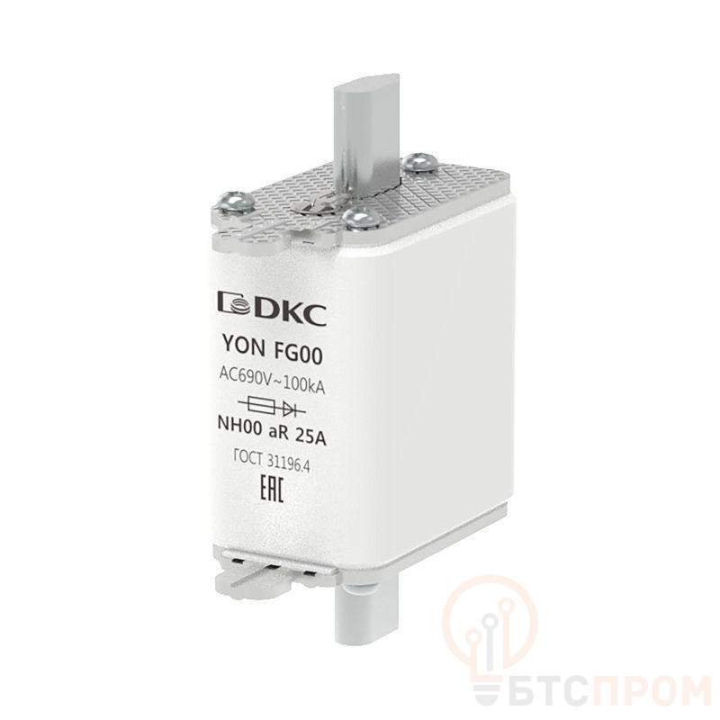 Предохранитель YON ножевого типа FG00 с одинарной индикацией 25А предназначен для защиты полупроводников и электронных компонентов электроустановки от короткого замыкания в цепях переменного тока напряжением до 690В (характеристика aR).