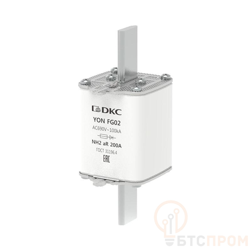 Предохранитель YON ножевого типа FG2 с одинарной индикацией 200А предназначен для защиты полупроводников и электронных компонентов электроустановки от короткого замыкания в цепях переменного тока напряжением до 690В (характеристика aR).