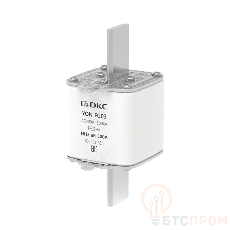 Предохранитель YON ножевого типа FG3 с одинарной индикацией 500А предназначен для защиты полупроводников и электронных компонентов электроустановки от короткого замыкания в цепях переменного тока напряжением до 400В (характеристика aR).