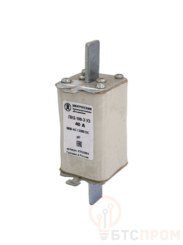 Вставка плавкая ПН2-100-Э У3 на 40А стальные ножи Электротехник ET522864 фото в каталоге от BTSprom.by