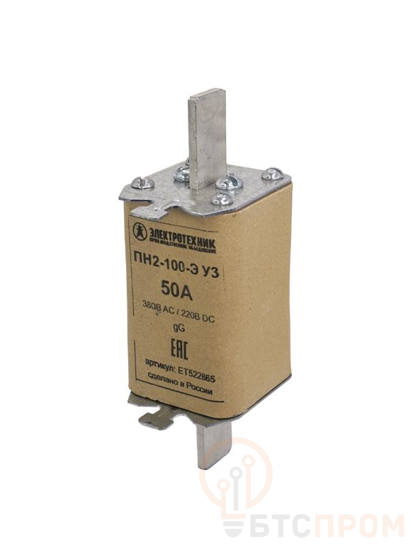 Вставка плавкая ПН2-100-Э У3 на 50А стальные ножи Электротехник ET522865 фото в каталоге от BTSprom.by