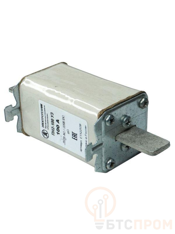 Предохранители плавкие промышленного назначения серии ПН2 предназначены для защиты электрооборудования промышленных установок и электрических сетей трёхфазного переменного тока с номинальным напряжением 380В частоты 50 и 60 Гц и с номинальным напряжением постоянного тока 220В включительно, при перегрузках и коротких замыканиях. * Конструкция контактной системы ножевого типа и болтового присоединения; * Применение механически прочных и неподдерживающих горение пластических материалов; * Токоведущие элементы из высококачественной электротехнической меди марки М1; * Плавкий элемент надежно соединен точечной сваркой с выводами предохранителя; * Плавкий элемент выполнен из электротехнической меди с нанесением напайки из олова, что позволяет обеспечить широкий диапазон защитной характеристики gG.