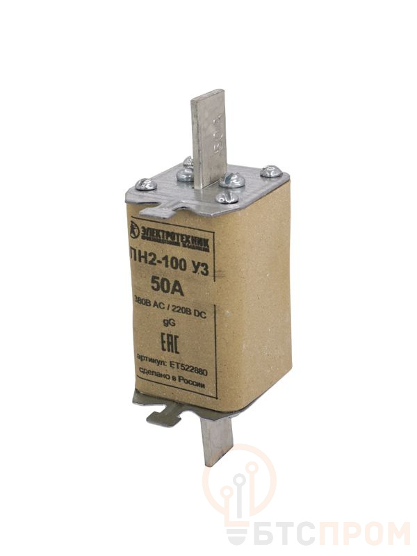 Вставка плавкая ПН2-100 У3 на 50А медные ножи Электротехник ET522880 фото в каталоге от BTSprom.by