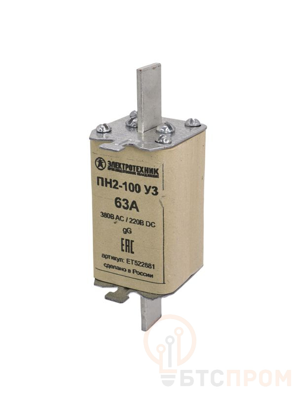 Вставка плавкая ПН2-100 У3 на 63А медные ножи Электротехник ET522881 фото в каталоге от BTSprom.by