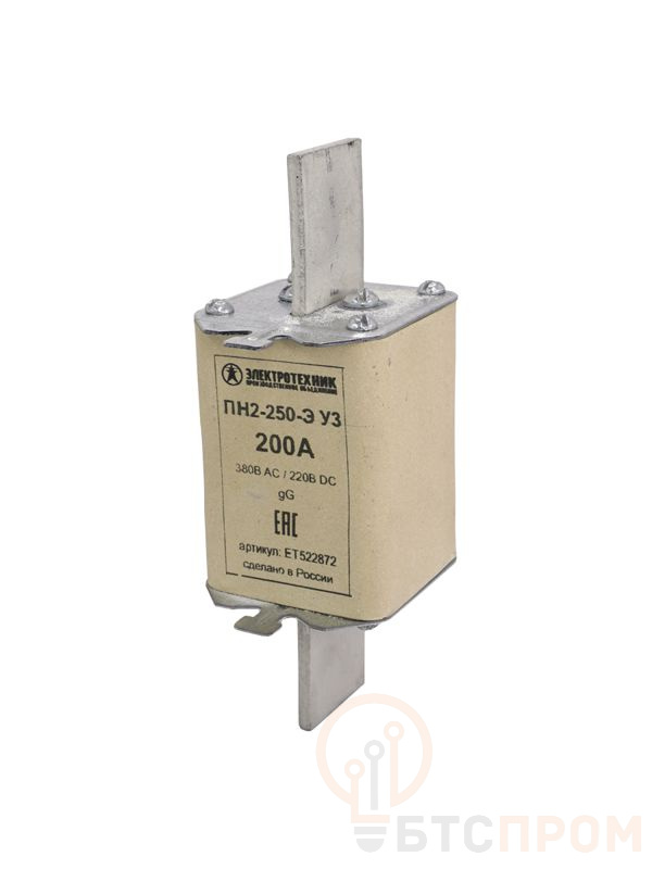 Вставка плавкая ПН2-250-Э У3 на 200А стальные ножи Электротехник ET522872 фото в каталоге от BTSprom.by