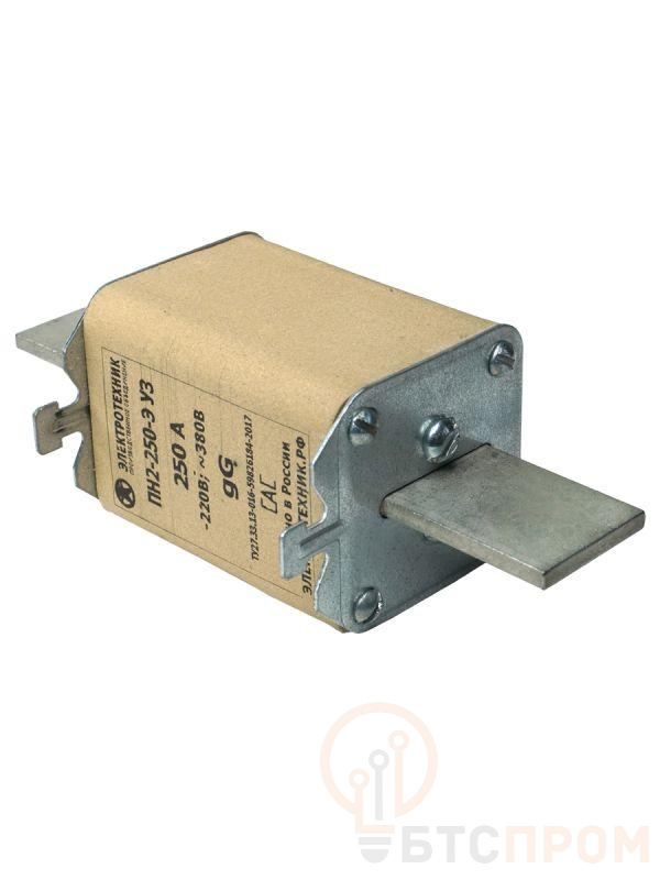 Предохранители плавкие промышленного назначения серии ПН2 предназначены для защиты электрооборудования промышленных установок и электрических сетей трёхфазного переменного тока с номинальным напряжением 380В частоты 50 и 60 Гц и с номинальным напряжением постоянного тока 220В включительно, при перегрузках и коротких замыканиях. * Конструкция контактной системы ножевого типа и болтового присоединения; * Применение механически прочных и неподдерживающих горение пластических материалов; * Токоведущие элементы из высококачественной электротехнической меди марки М1; * Плавкий элемент надежно соединен точечной сваркой с выводами предохранителя; * Плавкий элемент выполнен из электротехнической меди с нанесением напайки из олова, что позволяет обеспечить широкий диапазон защитной характеристики gG.