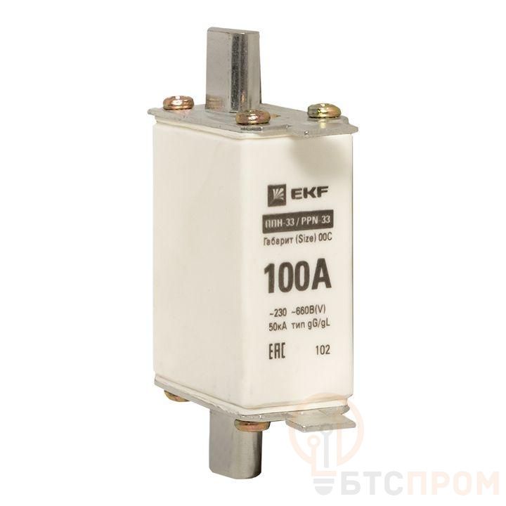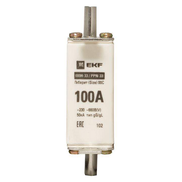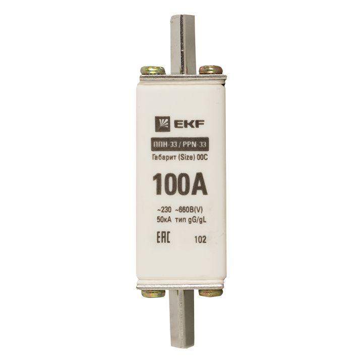 Плавкая вставка ППН-33 100/100А габарит 00С EKF. Предохранители плавкие ППН EKF, укомплектованные плавкими вставками типа gG/gL, предназначаются для защиты кабельных линий и промышленных электроустановок от токов перегрузки и короткого замыкания. Предохранители применяются в электрических сетях переменного тока частотой 50 Гц с напряжением до 660В. Применяются для крепления в распределительных и вводно-распределительных устройствах. Предохранители плавкие ППН могут устанавливаться в основание с держателем, а также в специально предназначенные рубильники. В комплект поставки предохранителей плавких ППН основание с держателем не входит и приобретается отдельно.