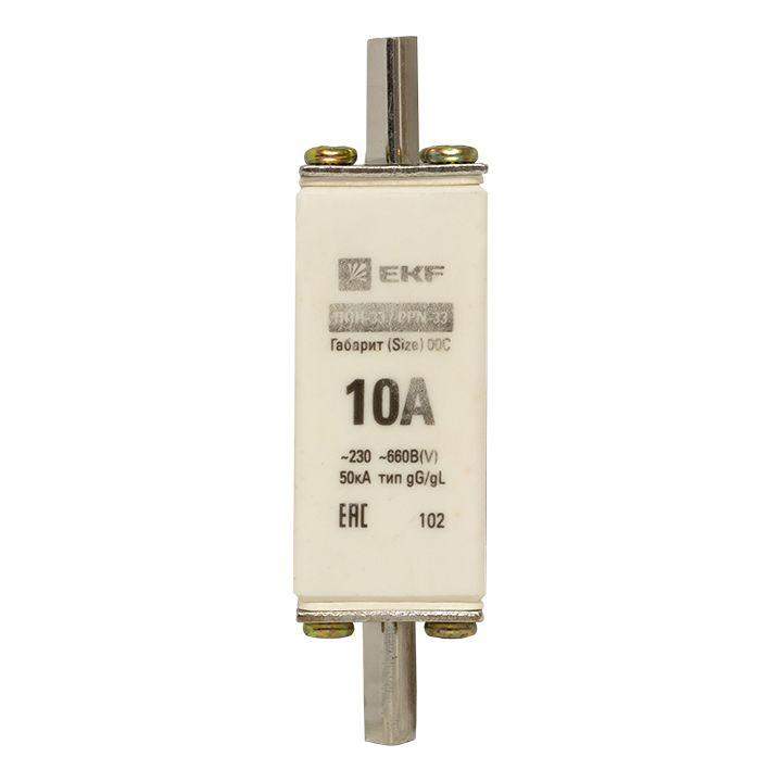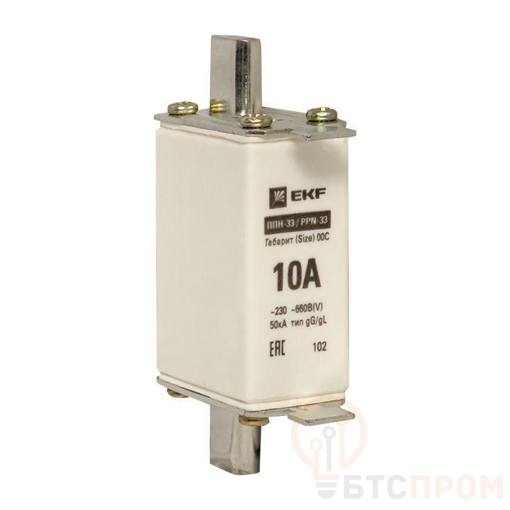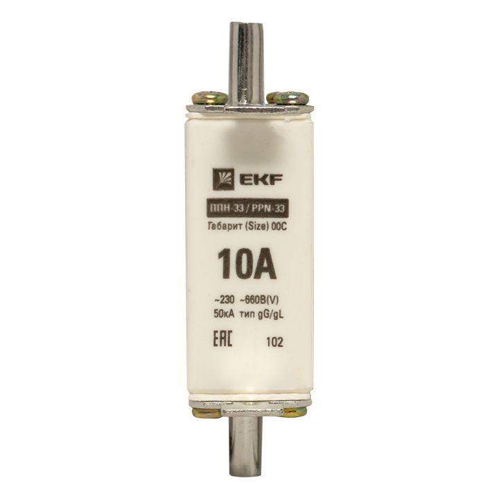 Плавкая вставка ППН-33 100/ 10А габарит 00С EKF. Предохранители плавкие ППН EKF, укомплектованные плавкими вставками типа gG/gL, предназначаются для защиты кабельных линий и промышленных электроустановок от токов перегрузки и короткого замыкания. Предохранители применяются в электрических сетях переменного тока частотой 50 Гц с напряжением до 660В. Применяются для крепления в распределительных и вводно-распределительных устройствах. Предохранители плавкие ППН могут устанавливаться в основание с держателем, а также в специально предназначенные рубильники. В комплект поставки предохранителей плавких ППН основание с держателем не входит и приобретается отдельно.