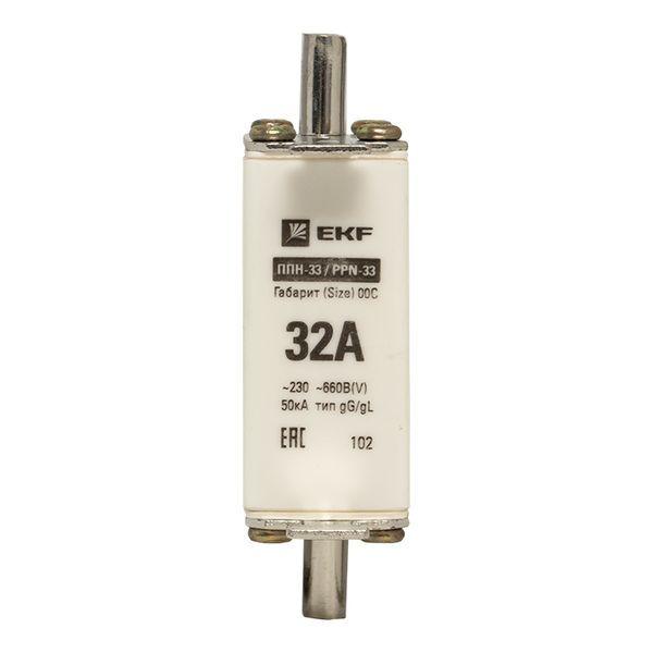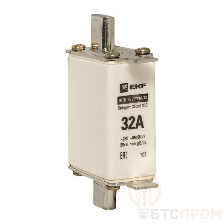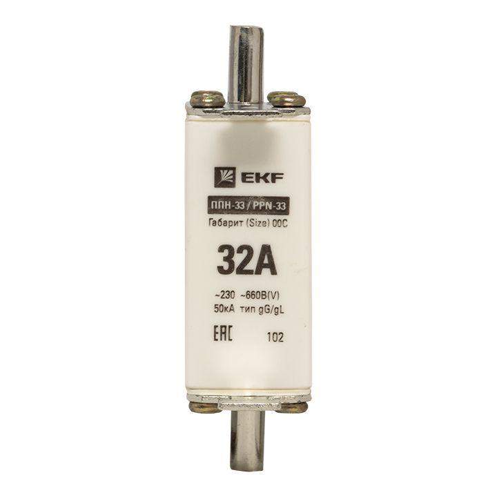 Плавкая вставка ППН-33 100/ 32А габарит 00С EKF. Предохранители плавкие ППН EKF, укомплектованные плавкими вставками типа gG/gL, предназначаются для защиты кабельных линий и промышленных электроустановок от токов перегрузки и короткого замыкания. Предохранители применяются в электрических сетях переменного тока частотой 50 Гц с напряжением до 660В. Применяются для крепления в распределительных и вводно-распределительных устройствах. Предохранители плавкие ППН могут устанавливаться в основание с держателем, а также в специально предназначенные рубильники. В комплект поставки предохранителей плавких ППН основание с держателем не входит и приобретается отдельно.