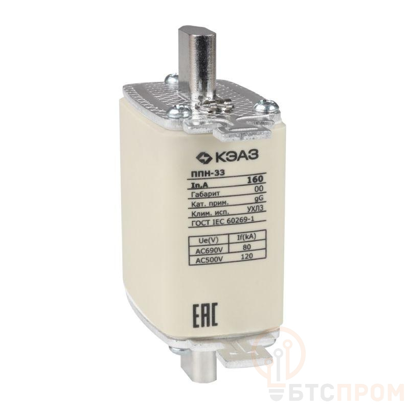 Предохранитель ножевого типа на номинальный ток 100 А, габаритом 00 и потерями мощности 10.2 Вт.