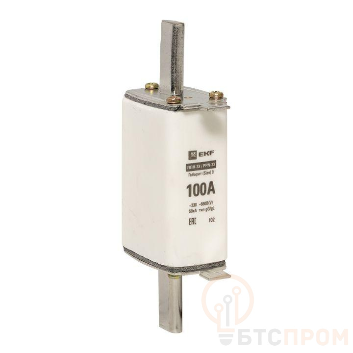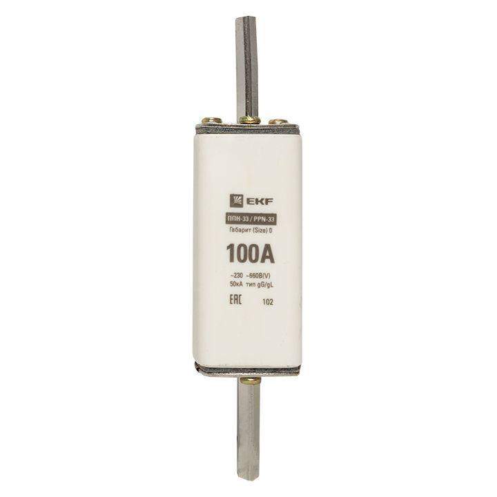 Плавкая вставка ППН-33 160/100А габарит 0 EKF. Предохранители плавкие ППН EKF, укомплектованные плавкими вставками типа gG/gL, предназначаются для защиты кабельных линий и промышленных электроустановок от токов перегрузки и короткого замыкания. Предохранители применяются в электрических сетях переменного тока частотой 50 Гц с напряжением до 660В. Применяются для крепления в распределительных и вводно-распределительных устройствах. Предохранители плавкие ППН могут устанавливаться в основание с держателем, а также в специально предназначенные рубильники. В комплект поставки предохранителей плавких ППН основание с держателем не входит и приобретается отдельно.