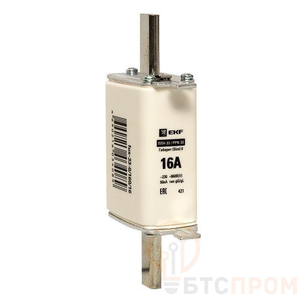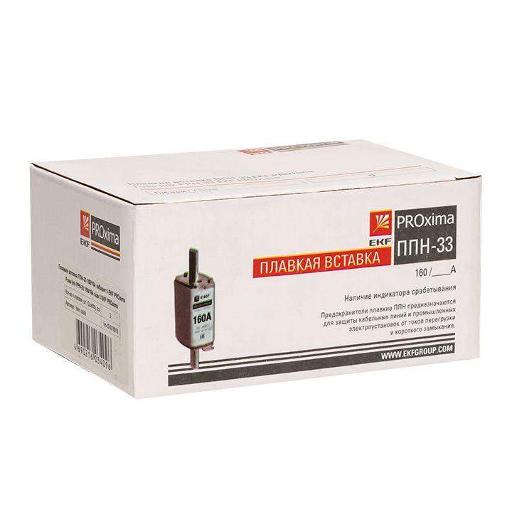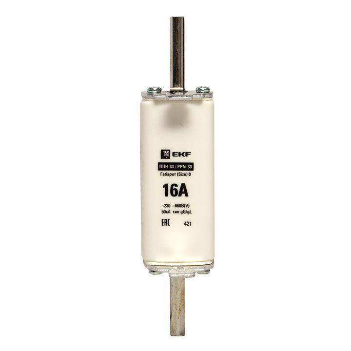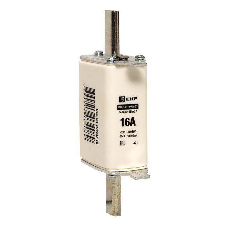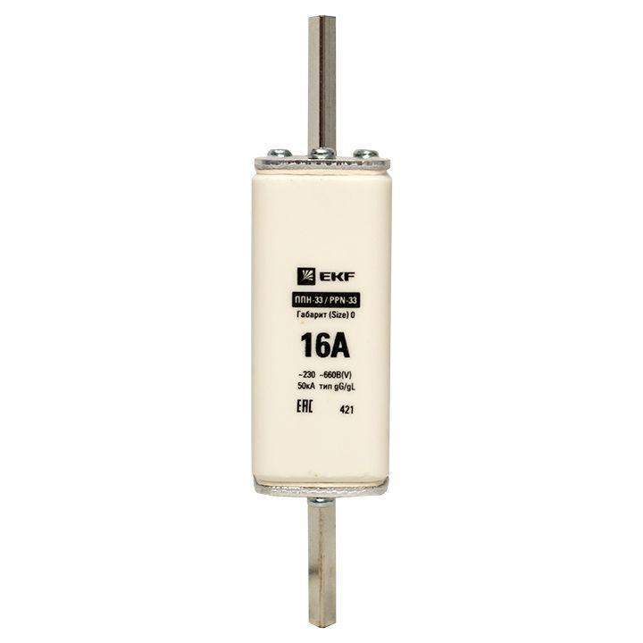 Плавкая вставка ППН-33 160/ 16А габарит 0 EKF. Предохранители плавкие ППН EKF, укомплектованные плавкими вставками типа gG/gL, предназначаются для защиты кабельных линий и промышленных электроустановок от токов перегрузки и короткого замыкания. Предохранители применяются в электрических сетях переменного тока частотой 50 Гц с напряжением до 660В. Применяются для крепления в распределительных и вводно-распределительных устройствах. Предохранители плавкие ППН могут устанавливаться в основание с держателем, а также в специально предназначенные рубильники. В комплект поставки предохранителей плавких ППН основание с держателем не входит и приобретается отдельно.