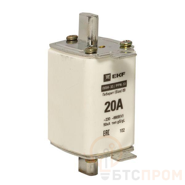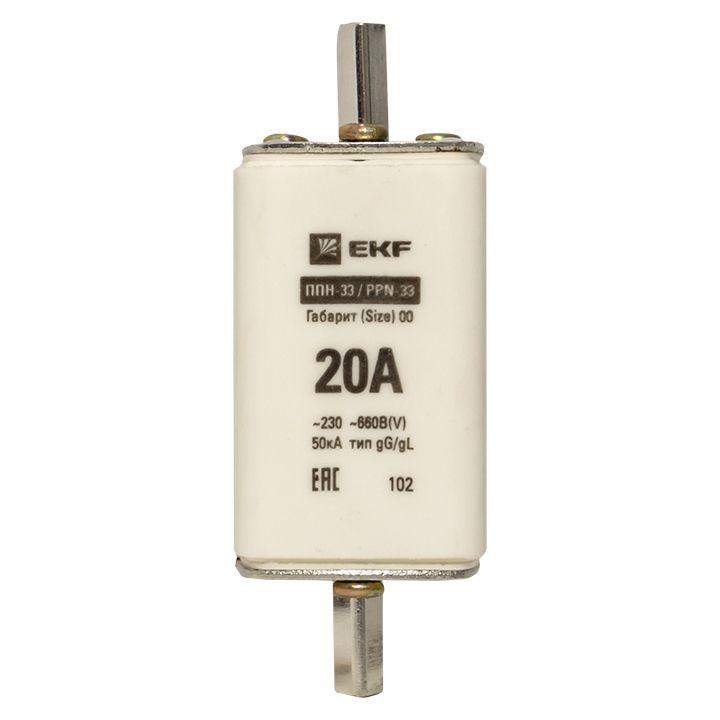 Плавкая вставка ППН-33 160/ 20А габарит 00 EKF. Предохранители плавкие ППН EKF, укомплектованные плавкими вставками типа gG/gL, предназначаются для защиты кабельных линий и промышленных электроустановок от токов перегрузки и короткого замыкания. Предохранители применяются в электрических сетях переменного тока частотой 50 Гц с напряжением до 660В. Применяются для крепления в распределительных и вводно-распределительных устройствах. Предохранители плавкие ППН могут устанавливаться в основание с держателем, а также в специально предназначенные рубильники. В комплект поставки предохранителей плавких ППН основание с держателем не входит и приобретается отдельно.