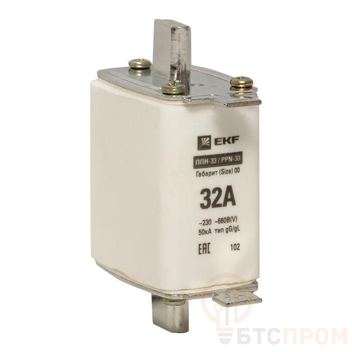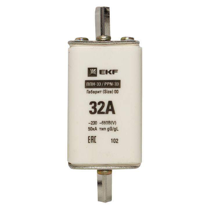 Плавкая вставка ППН-33 160/ 32А габарит 00 EKF. Предохранители плавкие ППН EKF, укомплектованные плавкими вставками типа gG/gL, предназначаются для защиты кабельных линий и промышленных электроустановок от токов перегрузки и короткого замыкания. Предохранители применяются в электрических сетях переменного тока частотой 50 Гц с напряжением до 660В. Применяются для крепления в распределительных и вводно-распределительных устройствах. Предохранители плавкие ППН могут устанавливаться в основание с держателем, а также в специально предназначенные рубильники. В комплект поставки предохранителей плавких ППН основание с держателем не входит и приобретается отдельно.