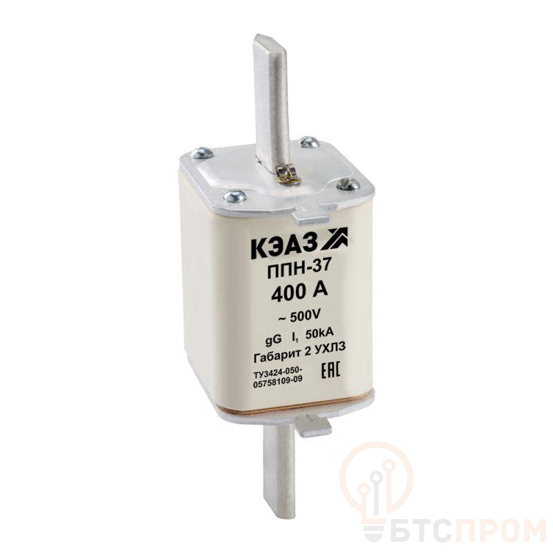 Предохранитель ножевого типа на номинальный ток 100 А, габаритом 1 и потерями мощности 11 Вт.