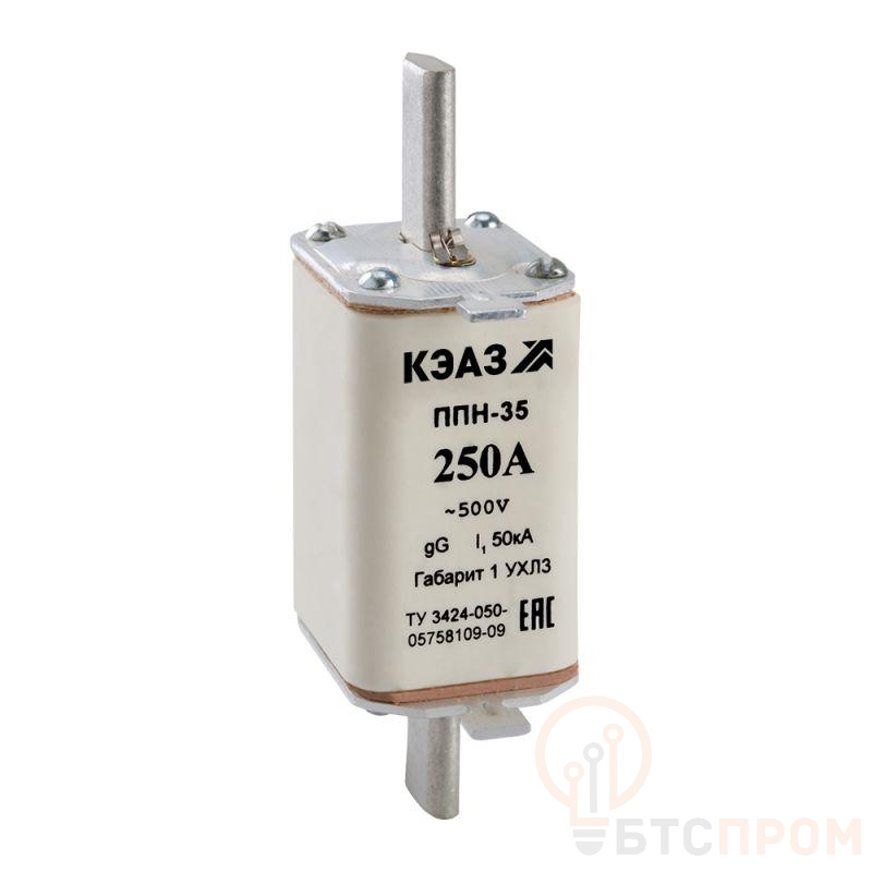 Предохранитель ножевого типа на номинальный ток 125 А, габаритом 1 и потерями мощности 12.2 Вт. Х1 – с указателем срабатывания, со свободным контактом.
