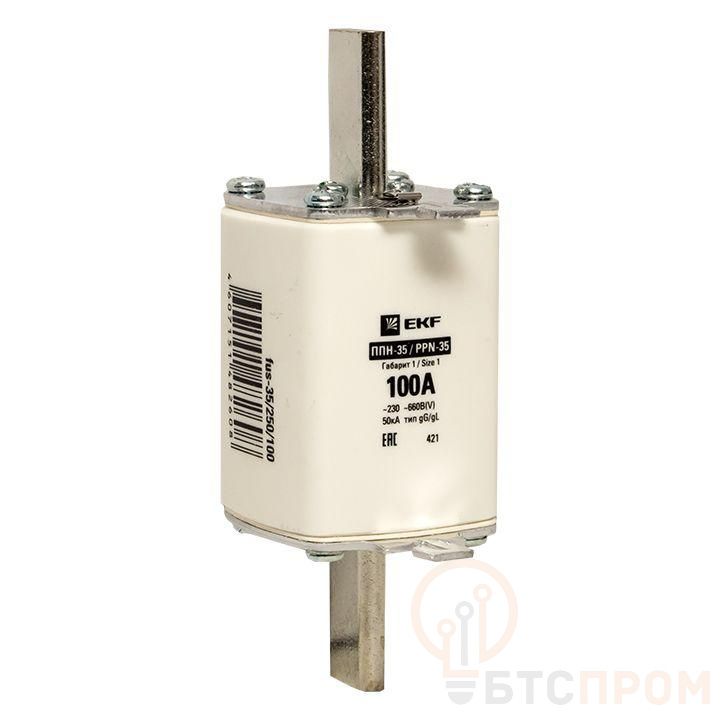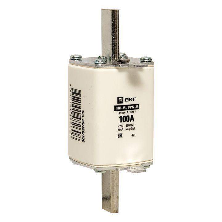 Плавкая вставка ППН-35 250/100А габарит 1 EKF. Предохранители плавкие ППН EKF, укомплектованные плавкими вставками типа gG/gL, предназначаются для защиты кабельных линий и промышленных электроустановок от токов перегрузки и короткого замыкания. Предохранители применяются в электрических сетях переменного тока частотой 50 Гц с напряжением до 660В. Применяются для крепления в распределительных и вводно-распределительных устройствах. Предохранители плавкие ППН могут устанавливаться в основание с держателем, а также в специально предназначенные рубильники. В комплект поставки предохранителей плавких ППН основание с держателем не входит и приобретается отдельно.