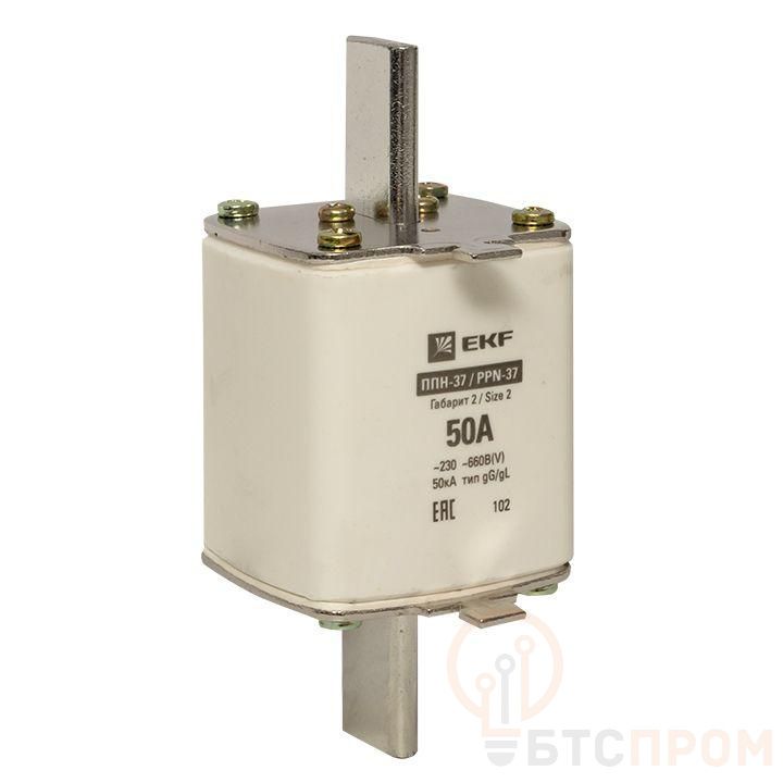 Плавкая вставка ППН-37 400/50А габарит 2 EKF. Предохранители плавкие ППН EKF, укомплектованные плавкими вставками типа gG/gL, предназначаются для защиты кабельных линий и промышленных электроустановок от токов перегрузки и короткого замыкания. Предохранители применяются в электрических сетях переменного тока частотой 50 Гц с напряжением до 660В. Применяются для крепления в распределительных и вводно-распределительных устройствах. Предохранители плавкие ППН могут устанавливаться в основание с держателем, а также в специально предназначенные рубильники. В комплект поставки предохранителей плавких ППН основание с держателем не входит и приобретается отдельно.
