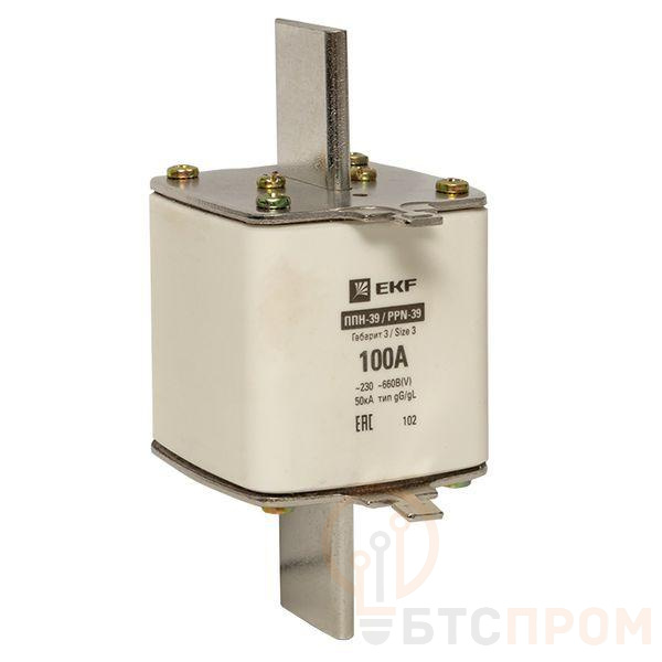 Плавкая вставка ППН-39 630/100А габарит 3 EKF. Предохранители плавкие ППН EKF, укомплектованные плавкими вставками типа gG/gL, предназначаются для защиты кабельных линий и промышленных электроустановок от токов перегрузки и короткого замыкания. Предохранители применяются в электрических сетях переменного тока частотой 50 Гц с напряжением до 660В. Применяются для крепления в распределительных и вводно-распределительных устройствах. Предохранители плавкие ППН могут устанавливаться в основание с держателем, а также в специально предназначенные рубильники. В комплект поставки предохранителей плавких ППН основание с держателем не входит и приобретается отдельно.