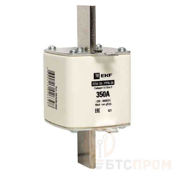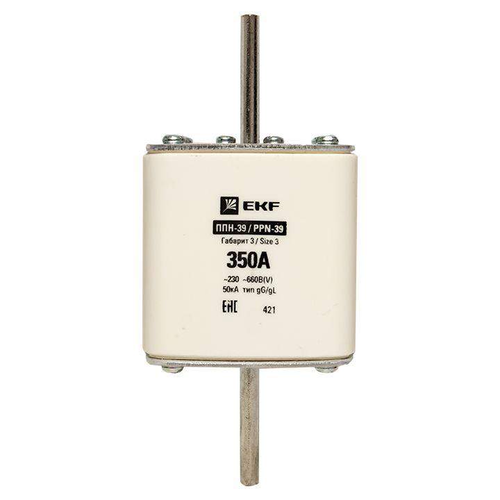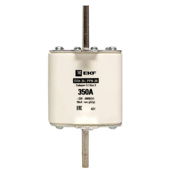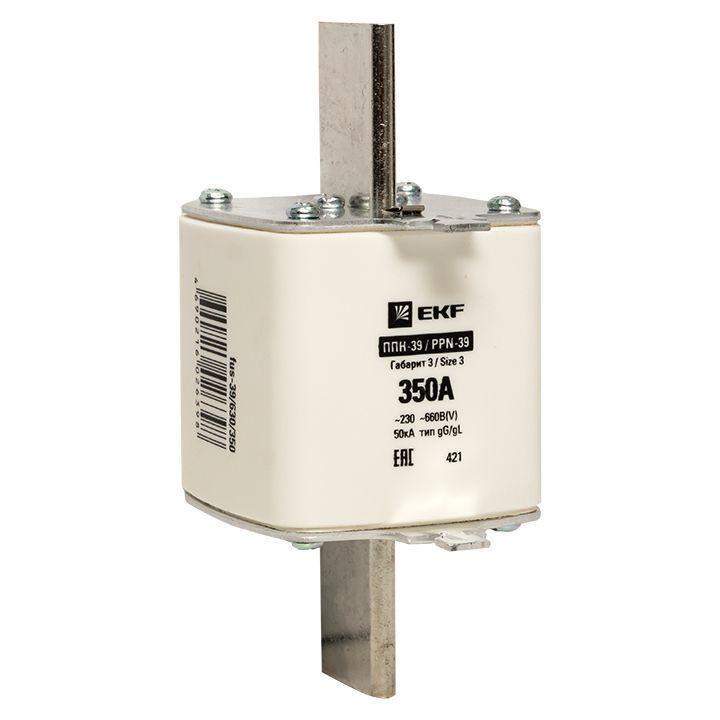 Плавкая вставка ППН-39 630/350А габарит 3 EKF. Предохранители плавкие ППН EKF, укомплектованные плавкими вставками типа gG/gL, предназначаются для защиты кабельных линий и промышленных электроустановок от токов перегрузки и короткого замыкания. Предохранители применяются в электрических сетях переменного тока частотой 50 Гц с напряжением до 660В. Применяются для крепления в распределительных и вводно-распределительных устройствах. Предохранители плавкие ППН могут устанавливаться в основание с держателем, а также в специально предназначенные рубильники. В комплект поставки предохранителей плавких ППН основание с держателем не входит и приобретается отдельно.